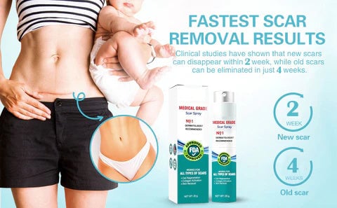 Our 100% Advanced Remove Scar spray helps flat and smooth scar texture in all skin types. We promise to remove the scars for as little as 4 weeks for new scars and for 4-8 weeks old scars!