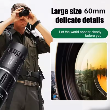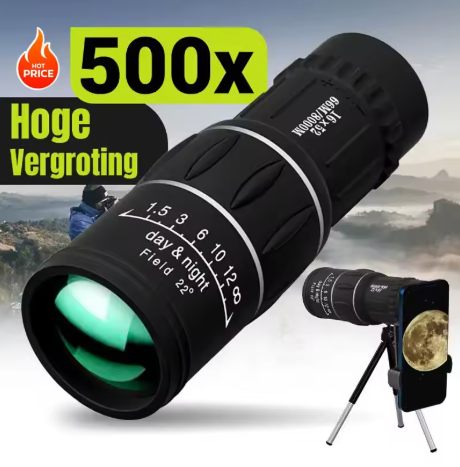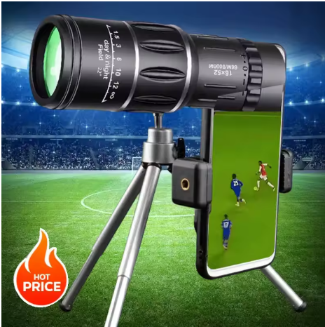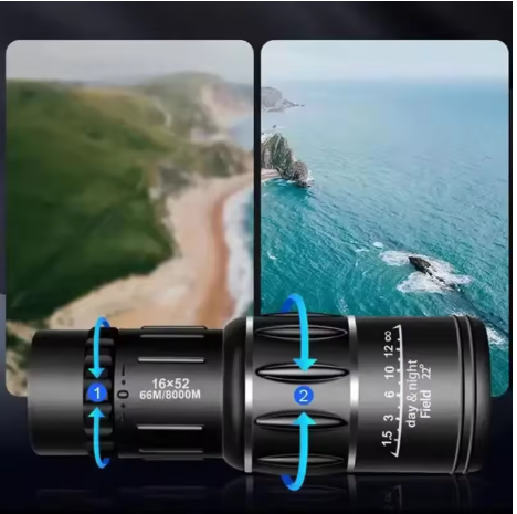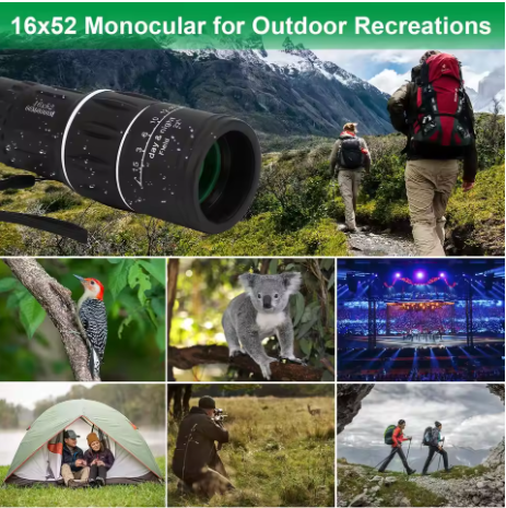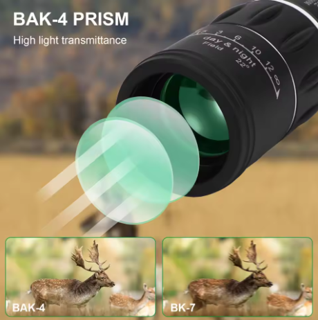 The 52 mm lens and 18.5 mm lens can see 16 times further and will be clearer and brighter. Prism material, BAK4, clear image without black bars, it will provide super clear and crisp images.
