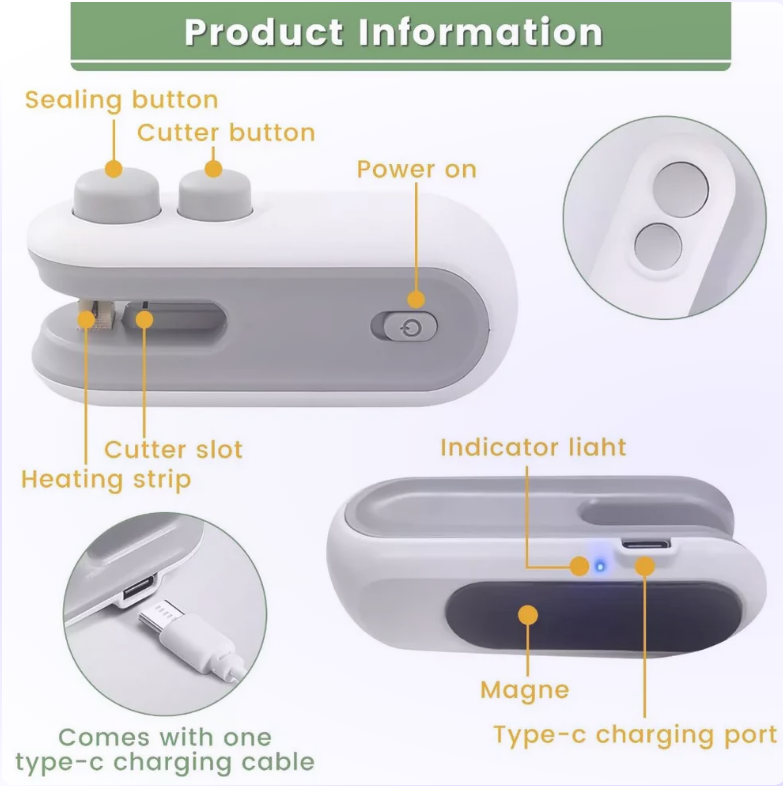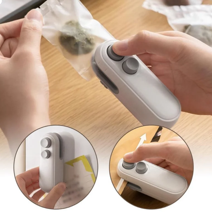 Introducing the 2 in 1 Mini Bag Heat Sealer with Cutter, a must-have tool for every kitchen and outdoor enthusiast. This compact device is designed to seal and cut bags effortlessly, ensuring your snacks remain fresh and your kitchen stays tidy.